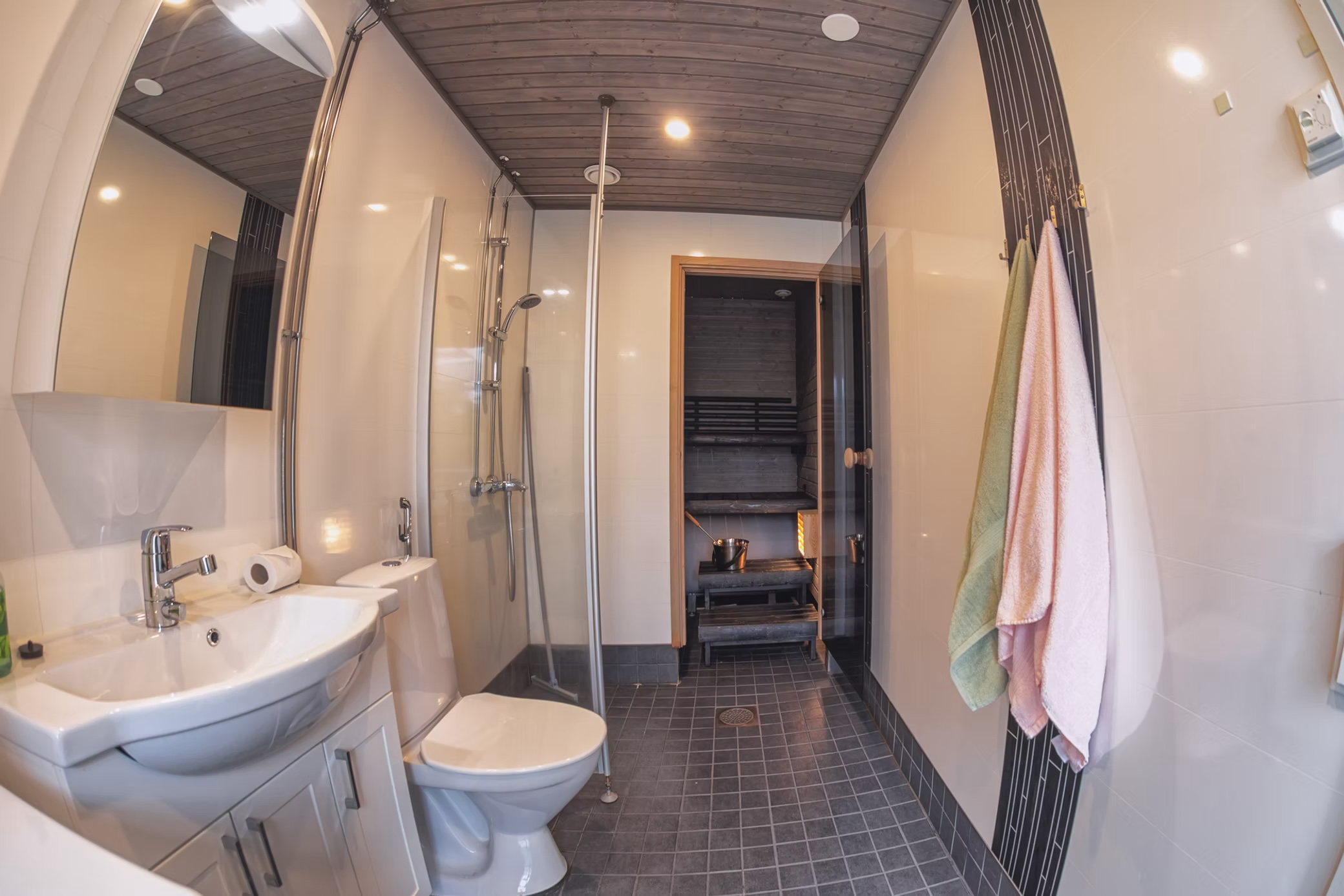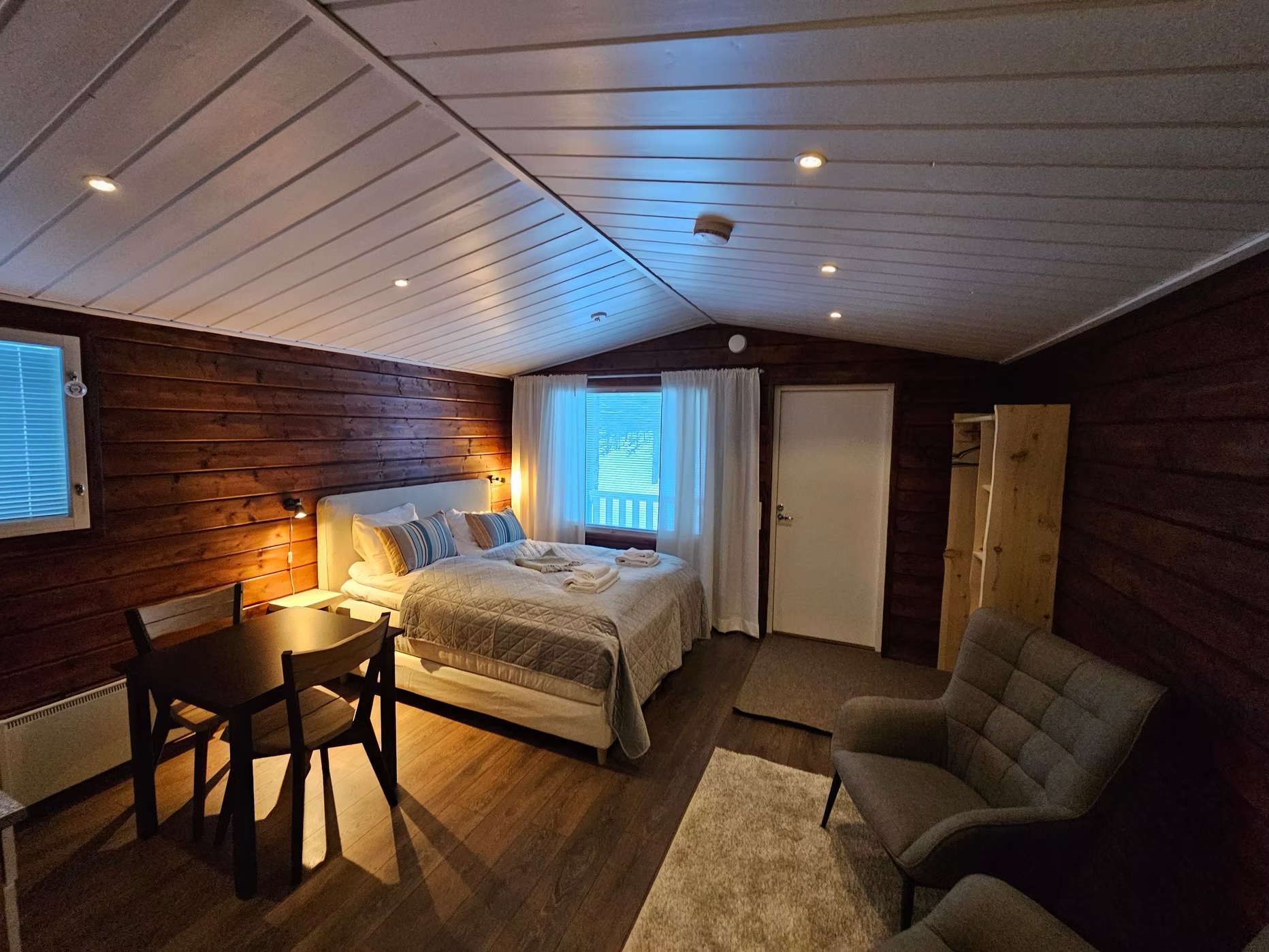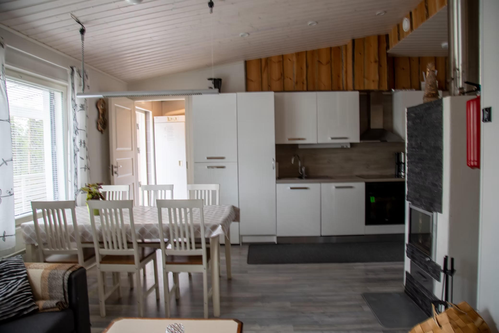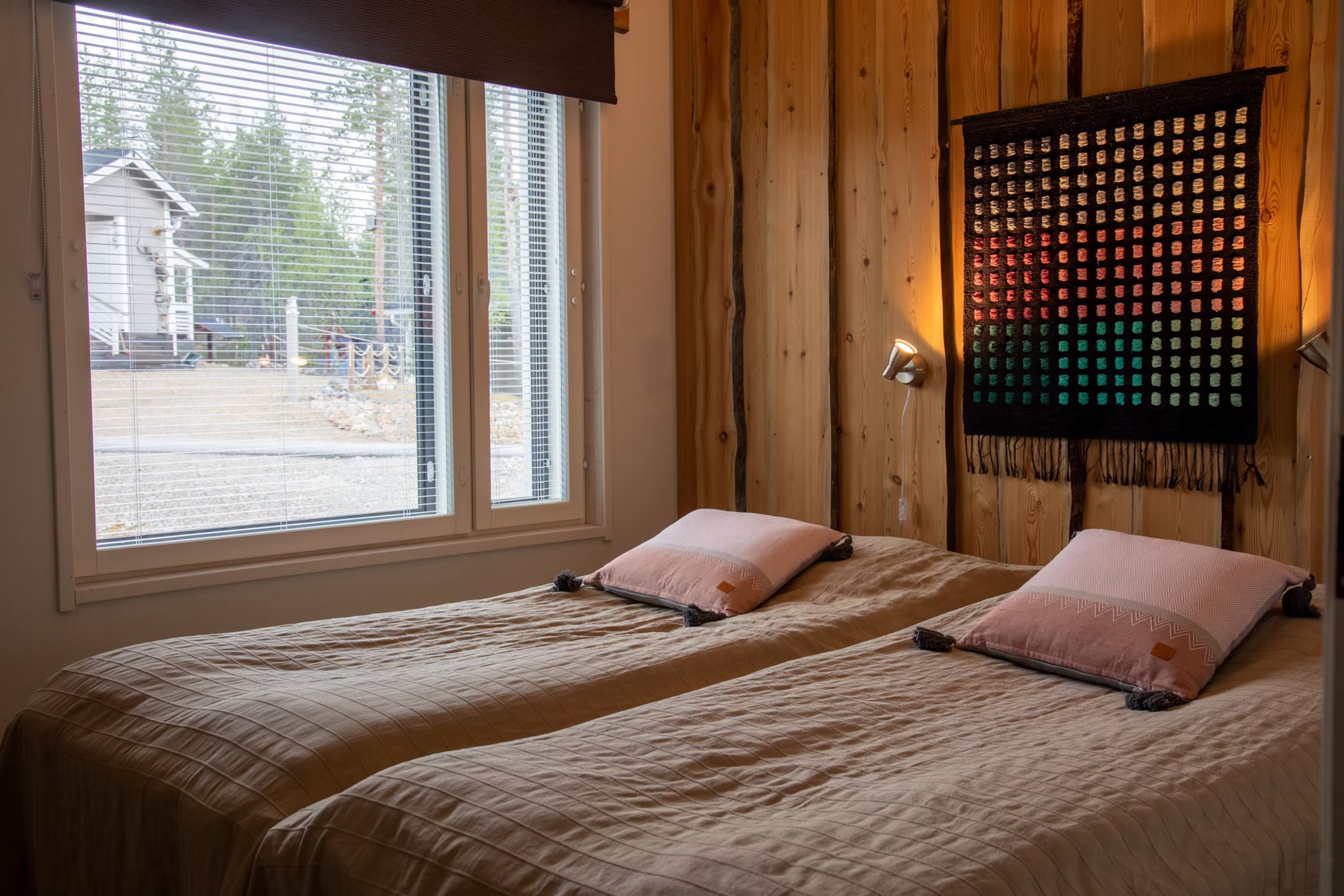 Vous séjournerez dans un chalet, « Pikkuporo » charmant et confortable, situé dans la paisible forêt de Laanila, près de Saariselkä. Les chalets Pikkuporo sont conçus comme des studios et disposent d'une kitchenette bien équipée, d'une table et de chaises, d'un lit queen-size confortable et de deux fauteuils. Chaque chalet dispose d'un sauna privé, d'une salle de bains avec toilettes et douche, et d'une terrasse extérieure.