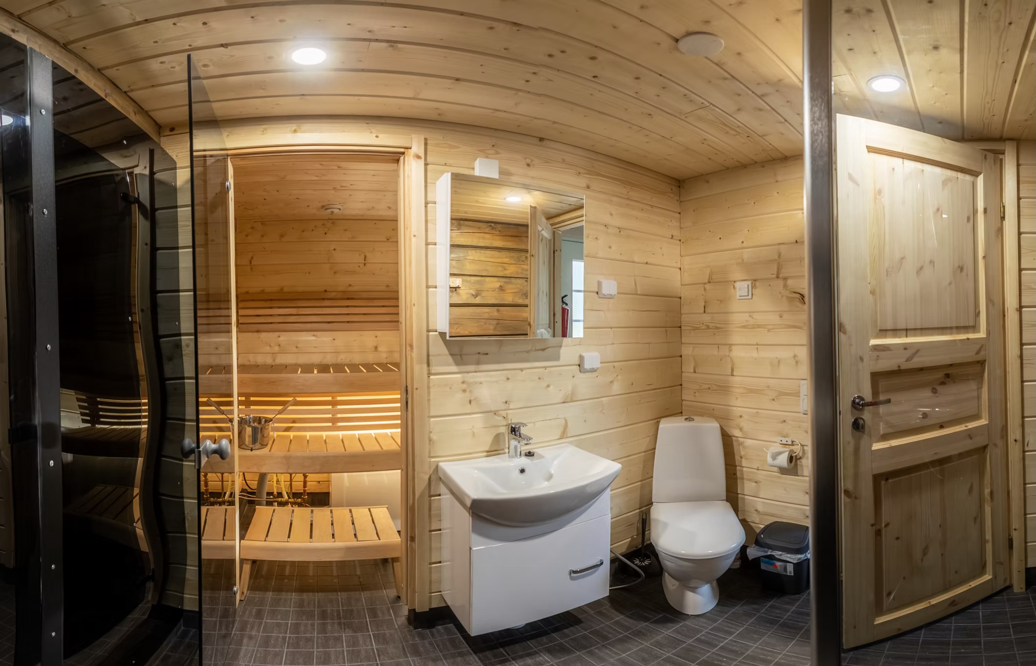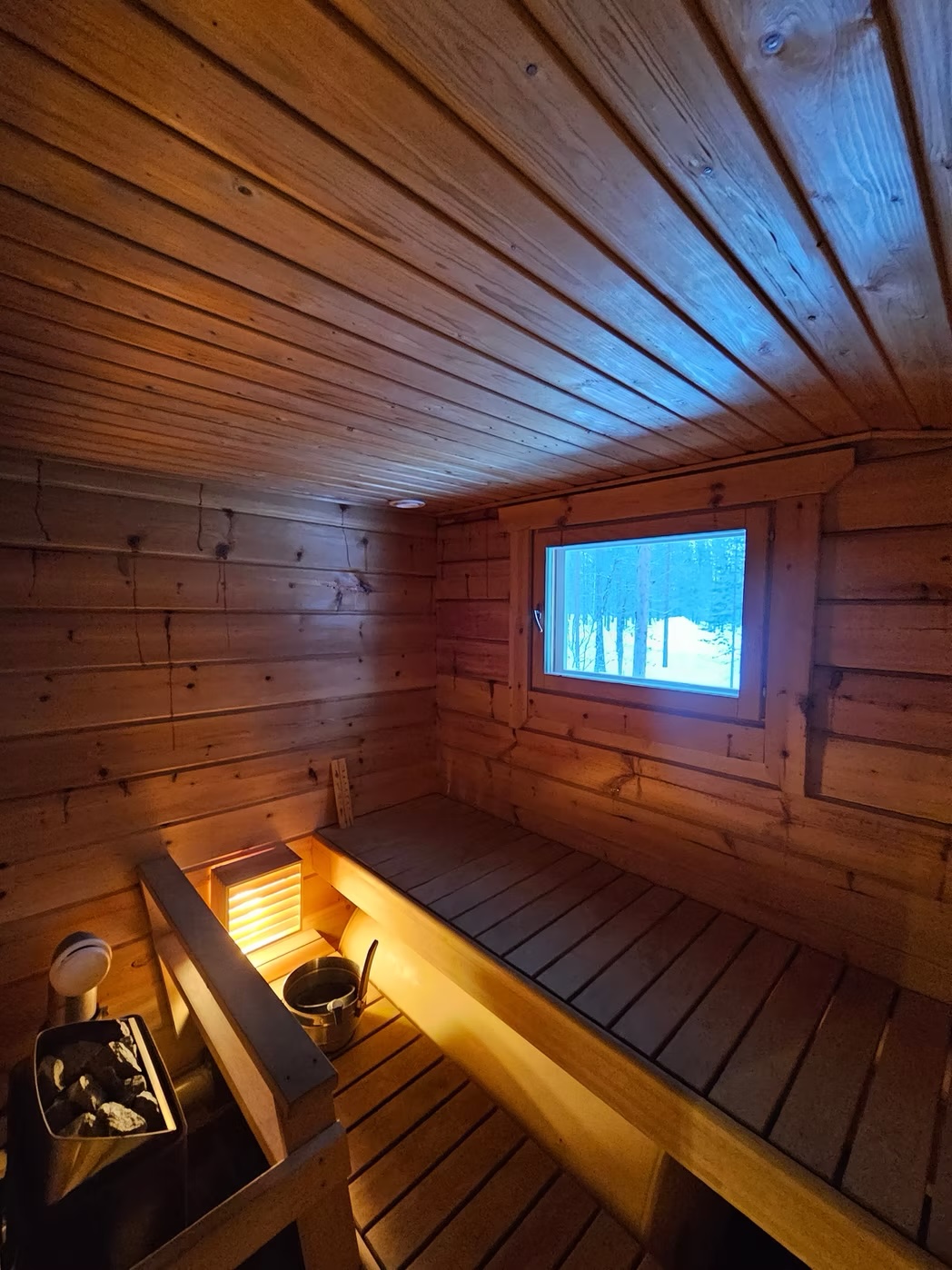 Vous séjournerez dans un chalet, « Pikkuporo » charmant et confortable, situé dans la paisible forêt de Laanila, près de Saariselkä. Les chalets Pikkuporo sont conçus comme des studios et disposent d'une kitchenette bien équipée, d'une table et de chaises, d'un lit queen-size confortable et de deux fauteuils. Chaque chalet dispose d'un sauna privé, d'une salle de bains avec toilettes et douche, et d'une terrasse extérieure.