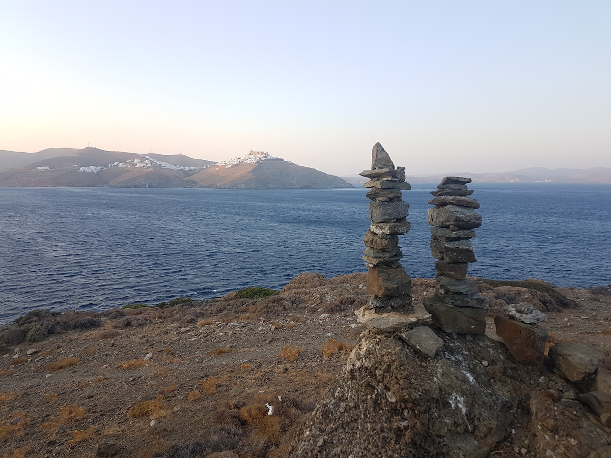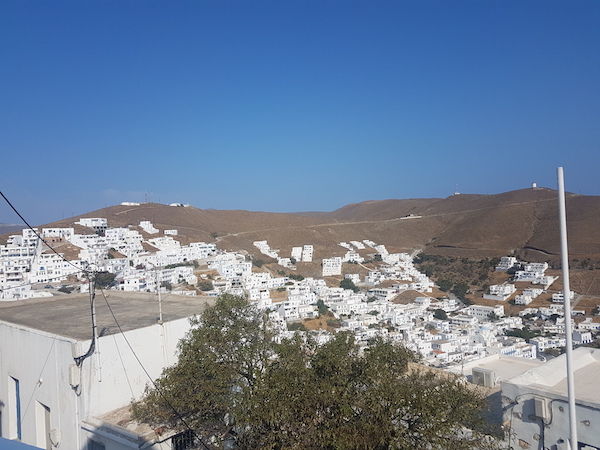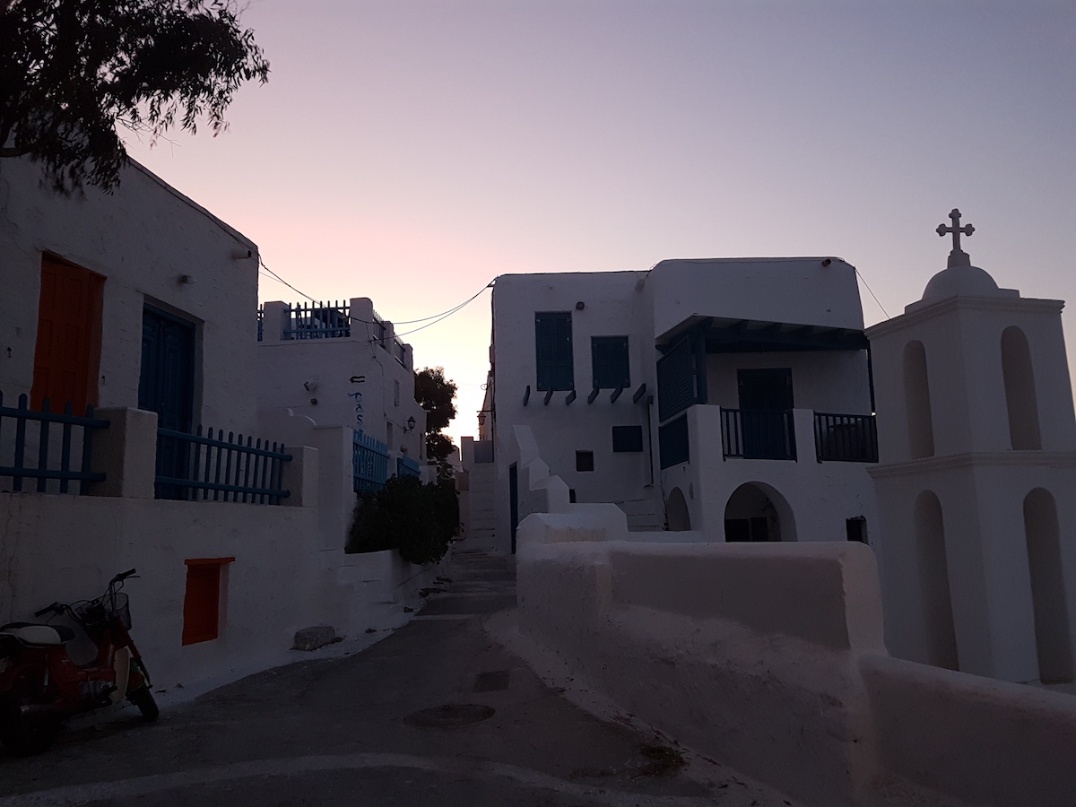 Isolée entre les deux archipels, Astypalea, également appelée Astypalaia, est restée longtemps à l’écart, elle est d’ailleurs toujours un peu compliquée d’accès, et l’île s’est développée touristiquement moins vite que ses voisines. En 2015 il n’y avait par exemple qu’un seul taxi sur l’île en pleine saison, lui permettant de conserver son authenticité et son caractère original. La forme très caractéristique de l’île en papillon divise Astypalaia en deux parties (Mesa et Exo nisi), séparées par un isthme ne dépassant pas les cent mètres de large sur sa partie la plus étroite. Au sud-ouest de l’île, Chora se dresse sur un rocher en saillie dans la mer formant deux baies : d’un côté le vieux port, Pera Gialos et l’autre Livadi à l’ambiance décontractée et plutôt familiale. La citadelle vénitienne connue comme le chateau Querini, domine la ville qui descend en amphithéâtre jusqu’au port au travers d’un labyrinthe de petite ruelles bordées de petites maisons blanches aux petits balcons en bois et aux escaliers extérieurs qui donnent à la ville un charme traditionnel. A mi-chemin, les neufs moulins à vent sont un point de rendez-vous le soir avant de rejoindre les cafés, tavernes et petits bars qui animent les soirées du village.